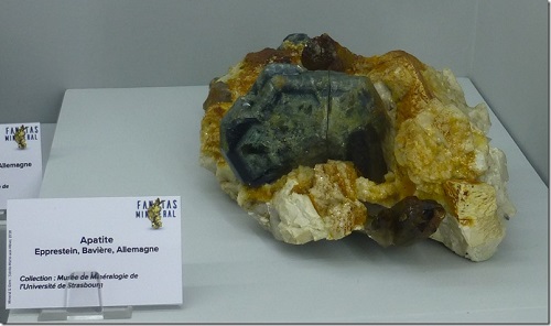 Das persönliche Highlight war für mich aber in der Vitrine des Museums in Straßburg. Diese Vitrine war unter dem Motto "Klassiker aus Deutschland" gestaltet. Neben den besteten Moschellandsbertgite, neudorfer Galeniten und freiberger Silber stand die beste Stufe mit Apatit und Topas vom Epprechtstein.