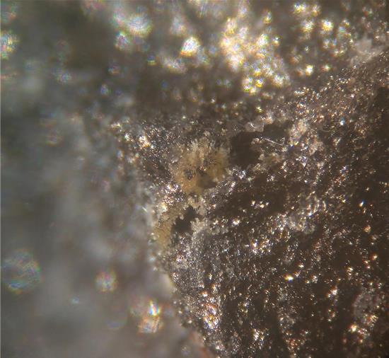 Ja, muss versuchen die Kristallform der orangebraunen xx unter dem Bino festzustellen..denn mit der Paragenese von Tsumeb in Verbindung mit Tarnowitzit (Mindat.org-Vergleiche) komme ich nicht weiter.. auch gibt es bisher kein einziges Foto mit solchen garbenförmigen Tarnowitziten .. wer weiß.. evtl. handelt es sich ja um ganz was anderes.