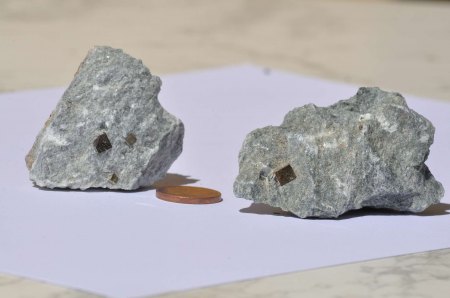 Sonst hab ich Pyrit (ziemlich viel, bis 5mm Kante) gefunden... im grünen Schiefer (nehm' an Chloritschiefer?), im Talgschiefer (bricht sehr leicht aus, gar nicht leicht eine schöne Stufe damit zu präparieren), im Quarz (ganz kleine Würfel), limonisiert, als Überzug amorph, als "Band" zwischen zwei Schieferschichten... ich denk' ich hab fast alle Versionen gefunden, die es dort gibt ^^