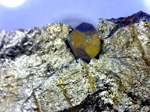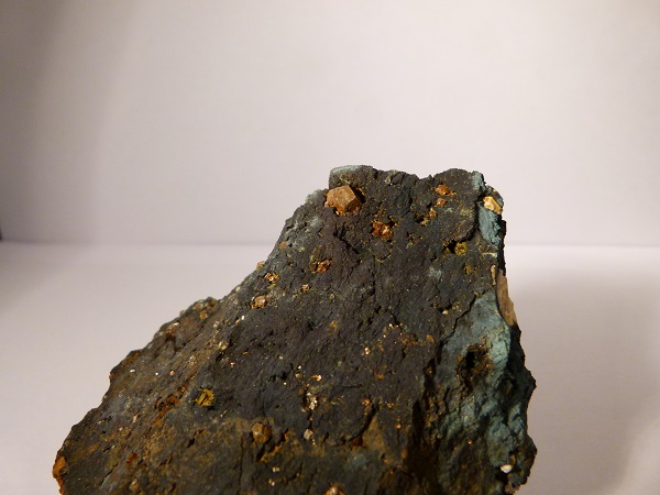 Eine durchaus für Kamsdorf typische Paragenese ist das Auftreten von idiomorphen Pyrit- Kristallen in Chalkopyrit- Derberz. Nachfolgendes Bild zeigt ein Belegstück mit etwa 1 cm großen Pyrit-XX.