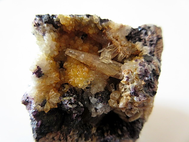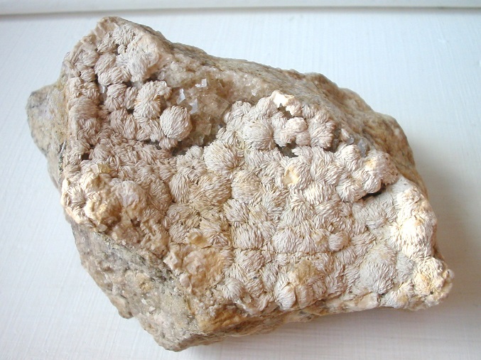 | Information: | Weiße Barytnüsse auf Fluorit als Handstufe vom Goldbachstolln bei Schönborn-Dreiwerden in Sachsen. |