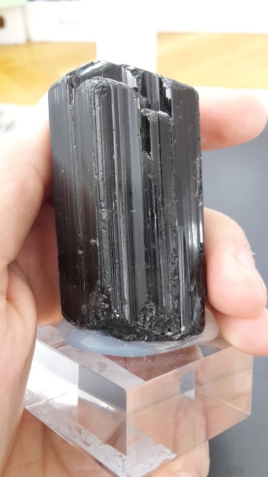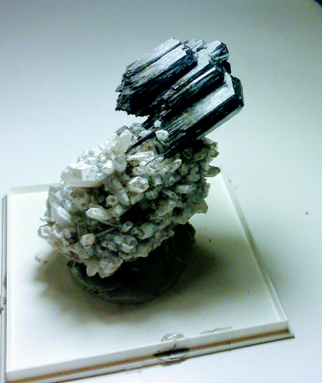 auch eine ansprechende Schörl-Stufe. Könnte aber auch Dravit sein oder zumindest eine Mischkristallisation Dravit-Schörl oder eine andere dunkle Turmalinart.