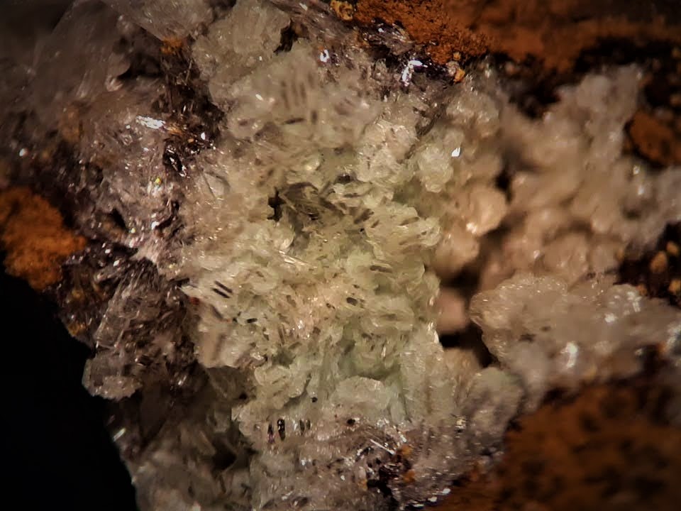 Von einer 6 cm grosse Stufe mit flachtafeligen Hemimorphit xx und scheibenförmigen Calcit xx aus der Mammoth Mine in Utah hab ich mal eine kleine Bilderserie aufgenommen.