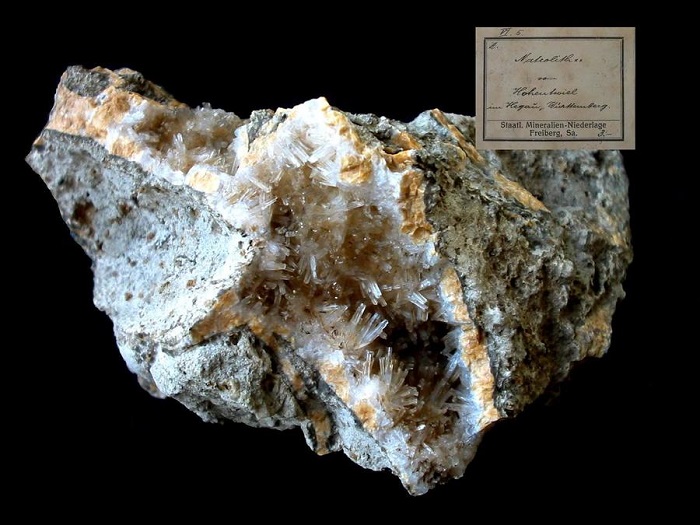 "Natrokomarovit" als Verdrängungsprodukt von Vuonnemit aus dem Pegmatit Nr.61, Kukisvomchorr, Kola. Originalmaterial von E.I. Semenov. |