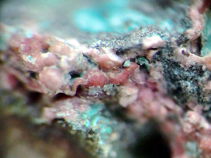 Das Blaue dürfte Lavendulan sein. Babánekit ist öfters auch mit Mineralien der Lindackerit-Gruppe vergesellschaftet, die bilden dann hellgrüne bis blaugrüne Blättchen.