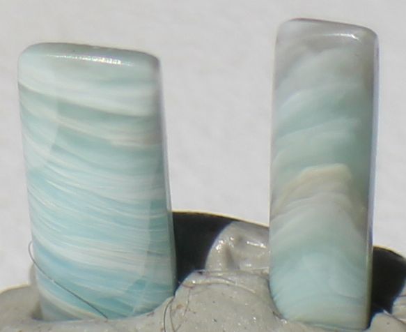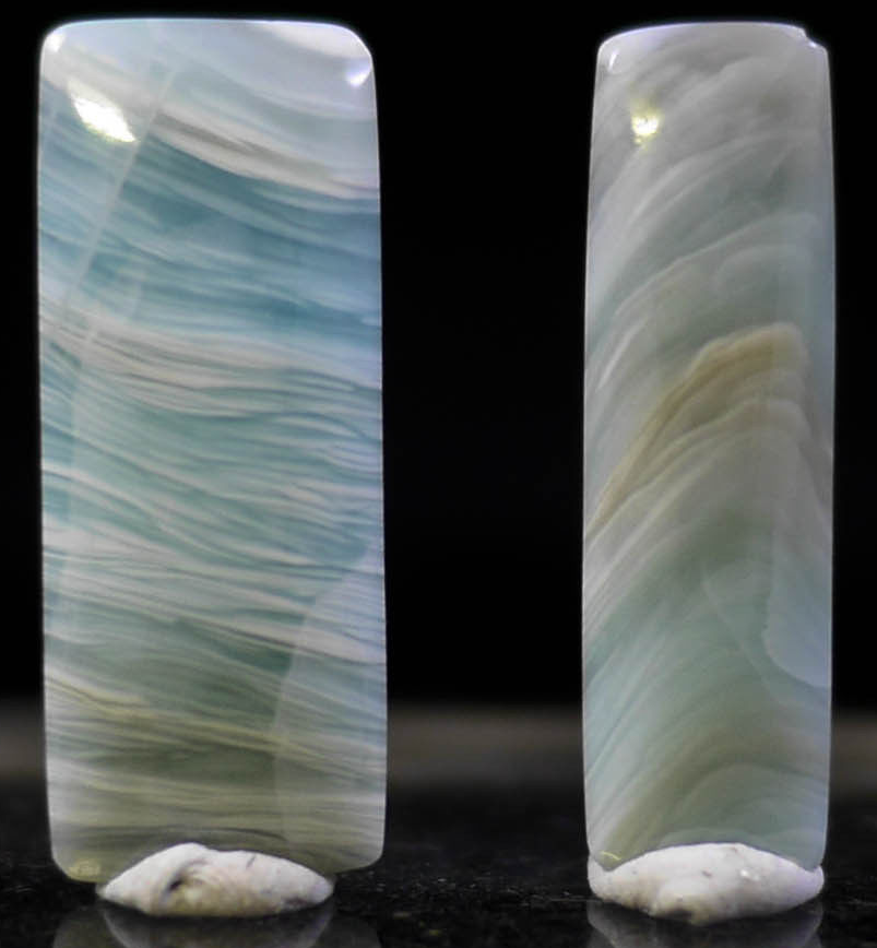 Im Laufe der Jahre hatten wir das Glück, völlig neue Entdeckungen von einzigartigem und unterschiedlichem Material in die Hände zu bekommen, das anders ist als alles andere, was wir gesehen haben. Dieser Stein ist ein schönes Beispiel für das, was "Perumar" genannt wurde, von einem kleinen Fund im Jahr 2017. Uns wurde gesagt, dass es eine Kombination aus Aragonit und Strontianit ist. Die Einheimischen vermarkteten es als "Perumar", weil es ein sehr ähnliches Aussehen wie die gebänderten / wirbelnden blauen und weißen "Larimar" (Pekolithen) Edelsteine aus der Dominikanischen Republik zeigt. Dieser Fund schien sehr begrenzt zu sein, da wir nur ein kleines Stück Steine in die Hände bekommen konnten, und wir hoffen, dass mehr herauskommt, aber jetzt sind nur wenige verfügbar. Dieses geschnittene Juwel "Oval Cabochon" zeigt sanft fließende Bänder aus abwechselnden weißen, blauen und goldenen Farbtönen, aber wenn der Stein hinterleuchtet ist, leuchtet er mit Farbe, die schöne Aqua-, Gold- und Gelbtöne in Bereichen zeigt. Dies ist ein großer Stein für das Material, da es eine starke definierte Bandierung zeigt. Viele der Steine, die wir ablehnten, zeigen schlechte Muster mit einem "dullen" oder "verschmierten" Aussehen. Es ist etwas für Schmuck geeignet (wahrscheinlich am besten in einen Anhänger eingestellt) und würde eine großartige Ergänzung zu Ihrer Edelsteinkollektion sein, da