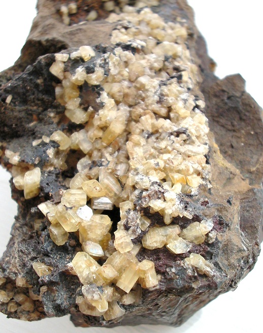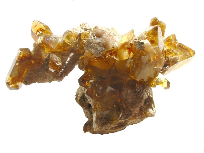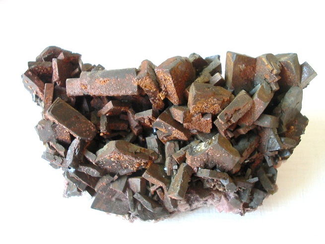 Dicke, malzbraune Kristalle als 6 cm breite Stufe vom Schacht 318 bei Antonsthal im Erzgebirge. Die meisten Stufen aus diesem Fund waren stark angeschlagen. |