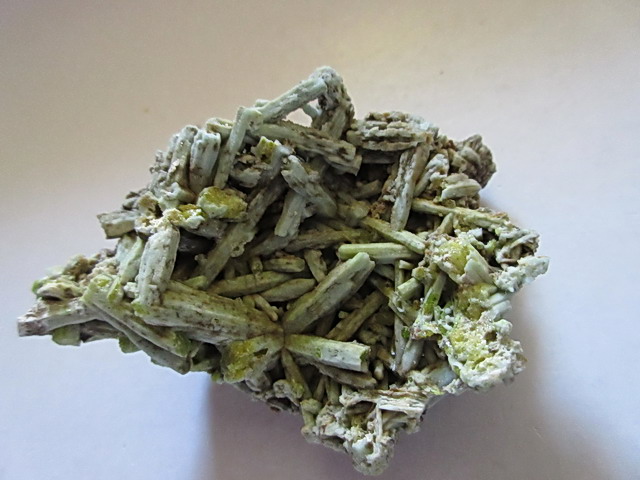 Die Preise der Pseudos von Plumbogummit nach Pyromorphit aus China werden wohl,neben der Stufengrösse, vor allem nach dem Grad der Umwandlung bestimmt. Diese 7 cm grosse Stufe, bei der teilweise noch Pyromorphit als Kern der xx enthalten ist,gehört zu den Bezahlbaren.