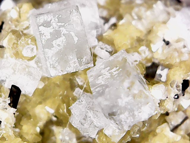 Es handelt sich dabei um Fluoritwürfel mit Turmalinnadeln (Schörl) und noch etwas das Ich aber nicht Identifizieren kann.