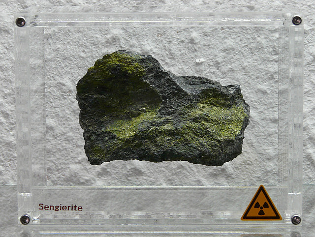 blass-grünliches Sengierit, Mina Eureka , La Torre de Capdella, Spanien, 51x32x15mm