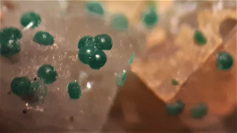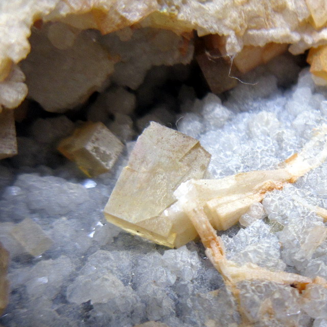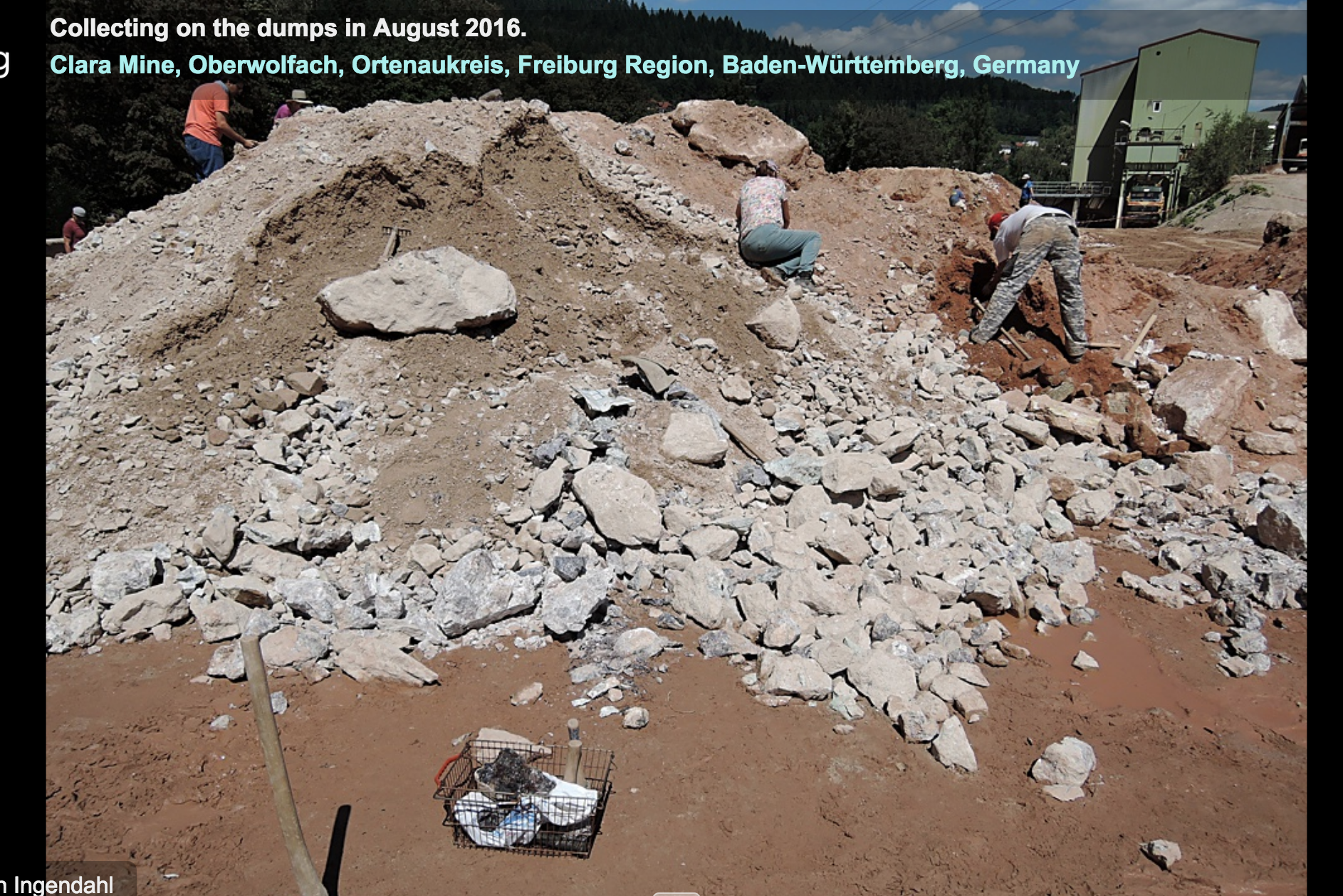 der Schwerspat - oft verquarzt - ist dort das Haupterz und Muttergestein der meisten Mineralien dort und nicht zu übersehen. Kommt auch zusammen mit Fluorit von dort vor.