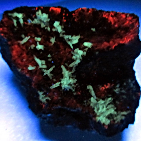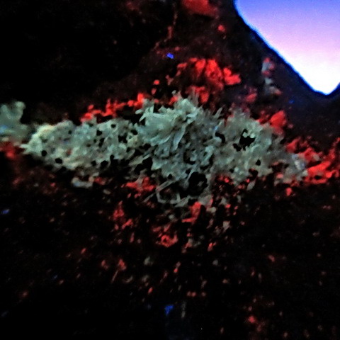 mit dabei. Das weiße Leuchten des Aragonits und das rote des Calcits ergibt einen sehr schönen Kontrast.