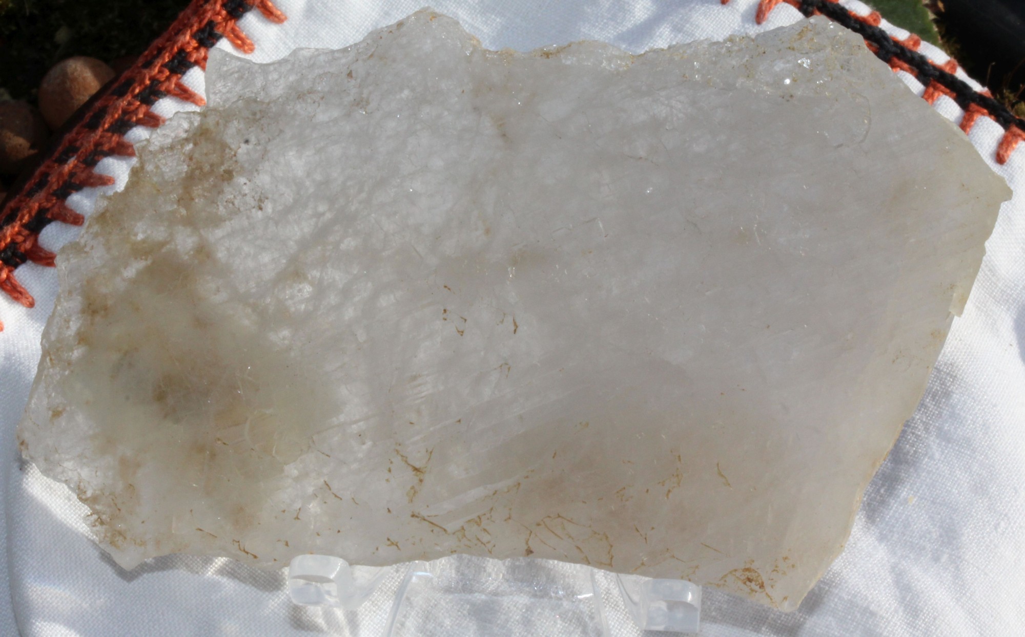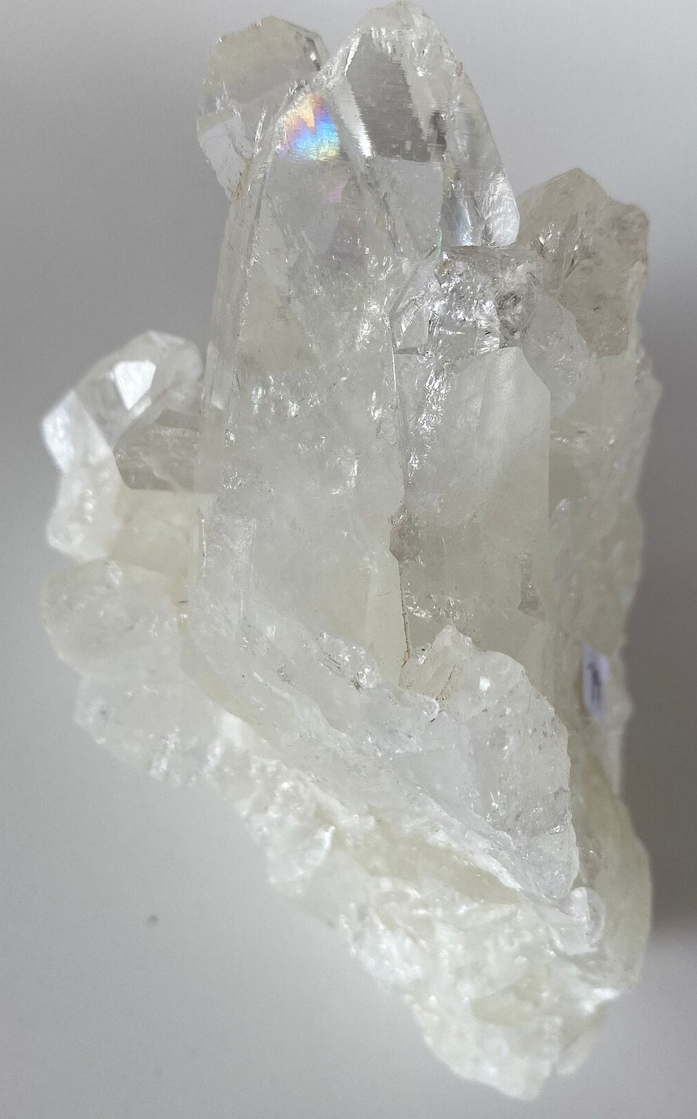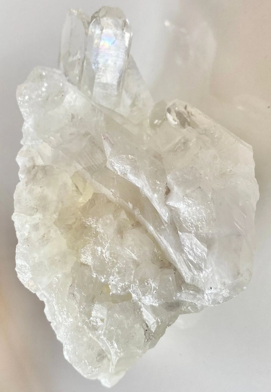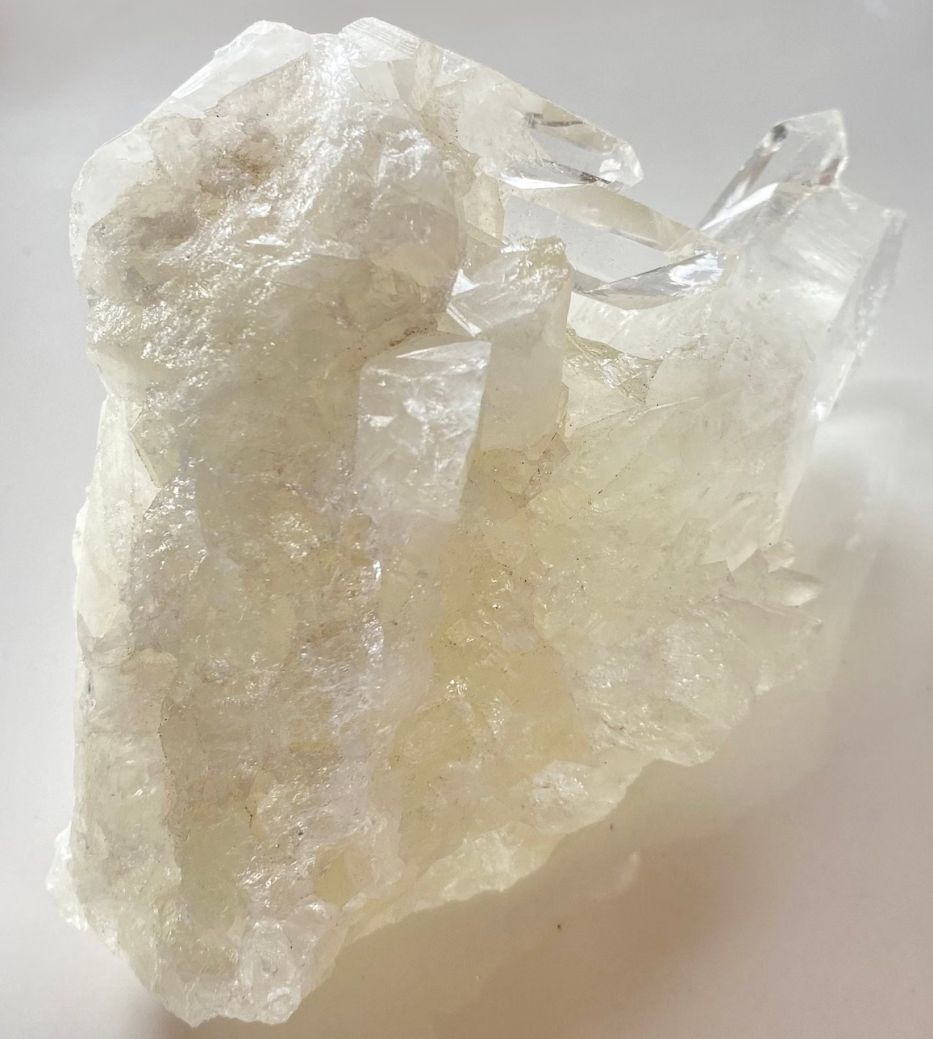 This large cluster has multiple rainbows and keys. This crystal is becoming very difficult to find. It has a powerful protective quality with a high vibration. Slight yellow color caused by the inclusions of sulphur.