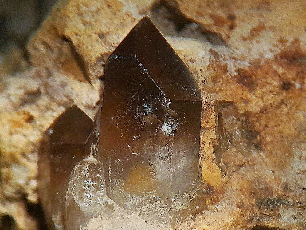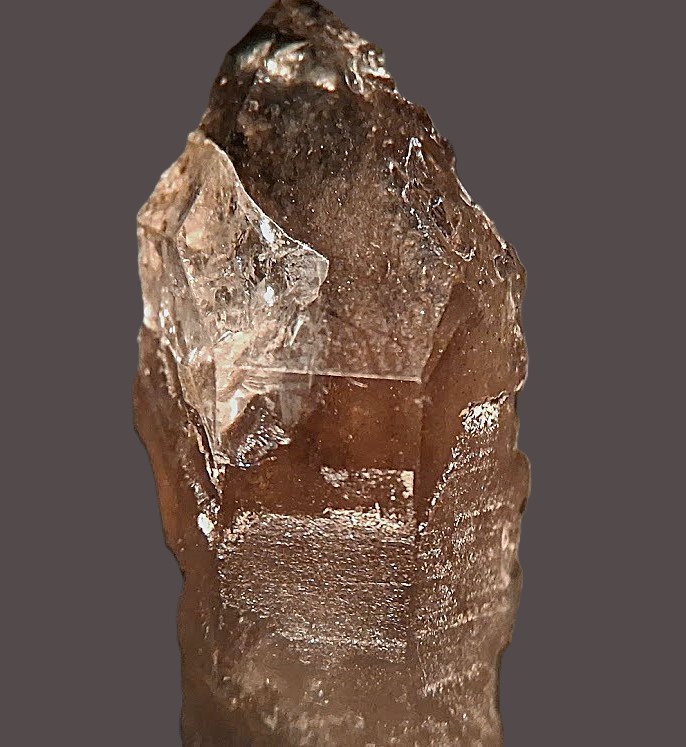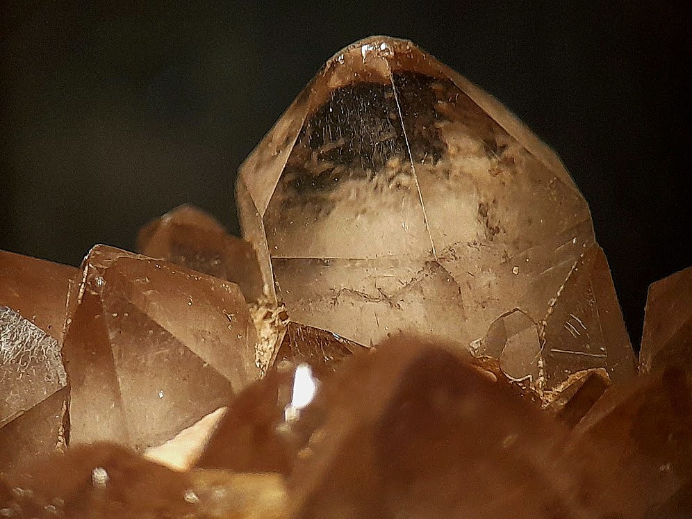 Ist mir noch gar nicht aufgefallen. Das sieht man aber auch nur bei einem bestimmten Blickwinkel. Wird der Kristall gedreht,ist das nicht mehr zu erkennen. Möglicherweise ist das gar kein richtiges Phantom, sondern ein optischer Effekt veruracht durch Lichtbrechung. Auf der anderen Seite ist der Krisrtall leicht beschädigt. Das spiegelt sich vielleicht im Inneren.