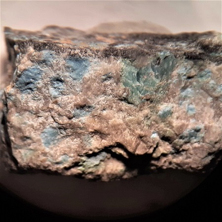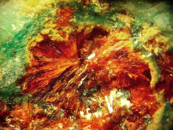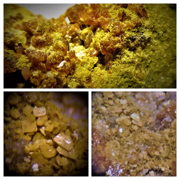 Begleiter sind Chalkanthit (Kupfervitriol, blau), Hohmannit, u.a.