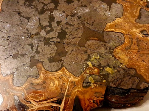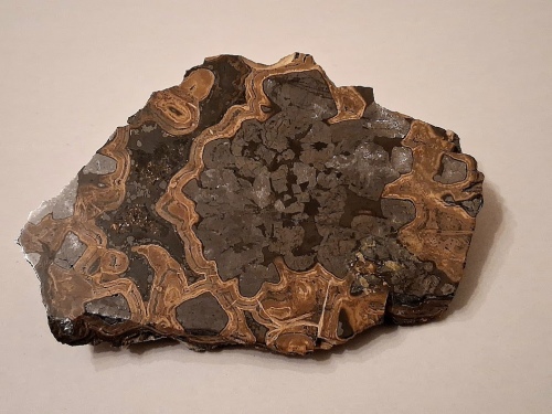 | Information: | typisches Stück Schalenblende (Anschliff Vorderseite), Normalstufen-Größe |