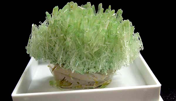 färbende Kupfermineral sitzt als grüne kugelige Aggregate in den ansonst farblosen Gips xx. Ich hab bisher erfolglos versucht