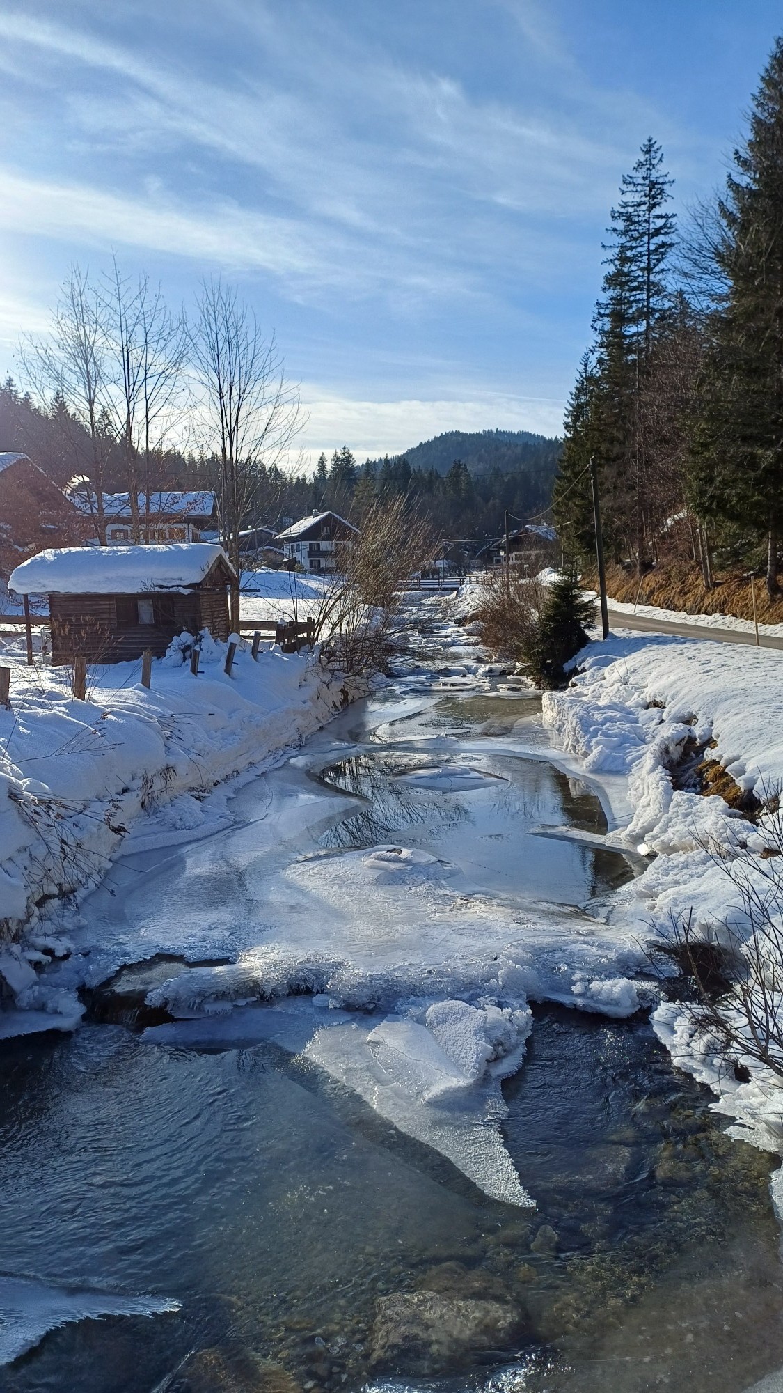 Und weil die Spaziergänge in der Umgebung auch trotz 3 Grad Kälte wunderschön sind, noch eine Aufnahme der Weißach in Glashütte bei Kreuth.