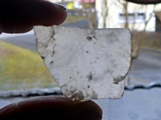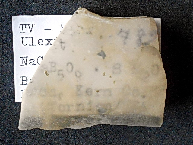 Ulexit scheint es auch im Gipsbruch Förste bei Osterode/Harz gegeben zu haben. Zumindest soll dieses 5,5 cm breite Stück dort 1973 gefunden worden sein.
