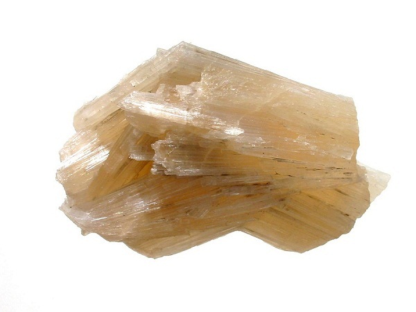 Gelblichorange gefärbte Kristalle bis 4,5 cm Länge als Handstück vom Steinbruch Phoenix bei Beckum im Münsterland. |