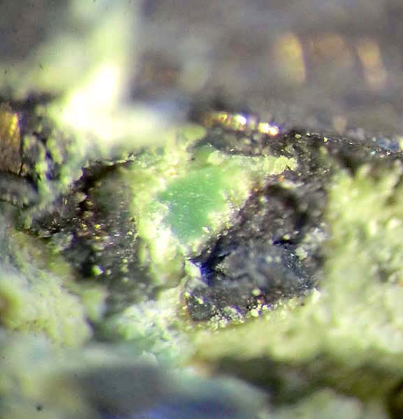 | Titel: | _Pararammelsbergit (xx)_Nickelboussingaultit_Annabergit_Ausschnitt_Diabas Stbr. am Heimberg_Wolfshagen_Lautental_Harz_Nds._1982_Peter.jpg |