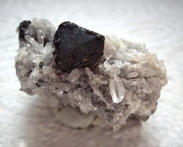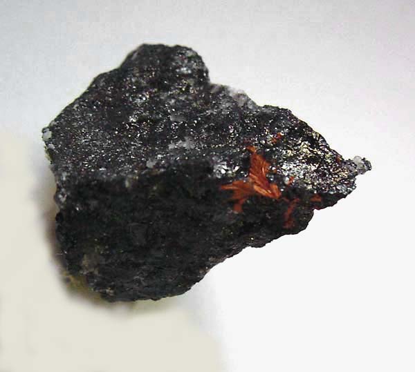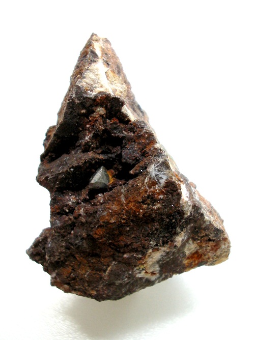 5 mm großer Tetraedrit x auf Siderit von der Grube Louisenglück bei Niederhonnefeld im Westerwald. |