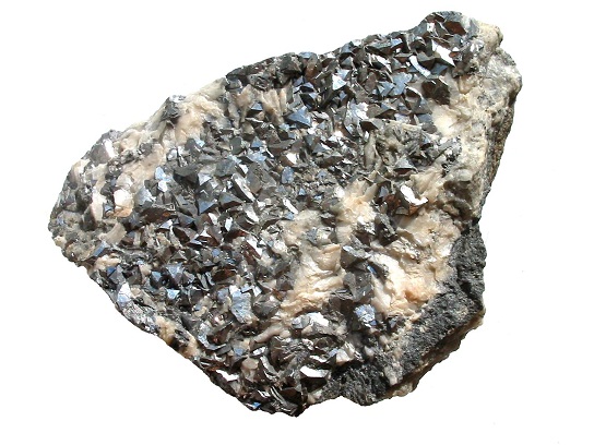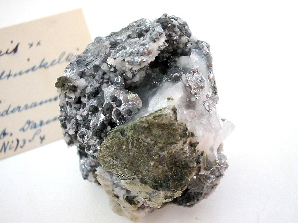 Grauglänzende Chloanthit xx bis 1 cm mit grauen Saffloritkugeln aus dem "Originalfund" von Paul Ramdohr für den Wingertsberg bei Nieder-Ramstadt im Odenwald. |