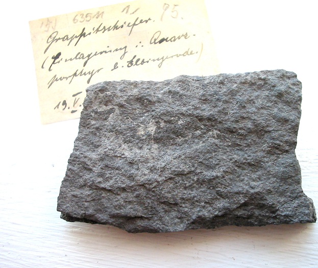 Zwei Graphitstufen, eine schöne von einem weltberühmten Vorkommen und eine unscheinbare von einem fast vergessenen... Anhänge an diesem Beitrag Dateiname: Graphit (Elbingerode).jpg Dateigröße: 121.11 KB Titel: Graphit (Elbingerode).jpg Information: Dunkler, Graphit führender Quarzporphyr, gefunden am 19.05.1921 im Mühlental bei Elbingerode im Ostharz. Breite ca. 7 cm. Heruntergeladen: 384 Dateiname: Graphit (Kropfmühl).jpg Dateigröße: 93.27 KB Titel: Graphit (Kropfmühl).jpg Information: 5 cm große Graphitstufe mit entwickelten Kristallflächen. Alte Stufe mit historischem Etikett von Kropfmühl in Bayern. Heruntergeladen: 378
