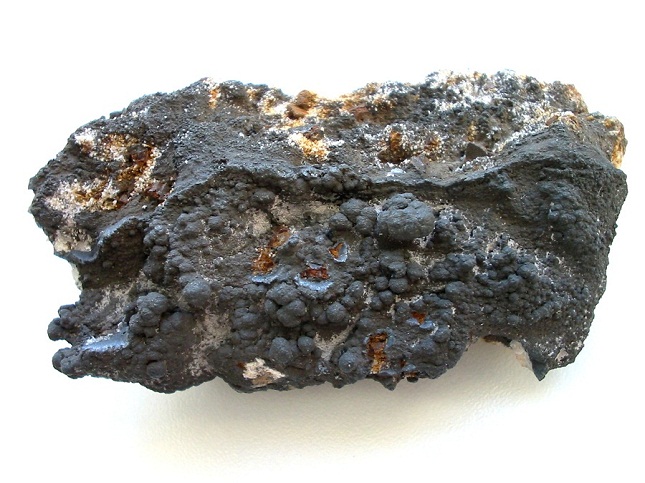 Die besten Hollandite aus Deutschland dürften von den Gruben um Langenberg bei Schwarzenberg im Erzgebirge stammen. Das Bild zeigt eine 11 cm breite Stufe von der Riedel Fundgrube, mit lackglänzendem Glaskopf der einem feinen, bunten Schiller zeigt. |