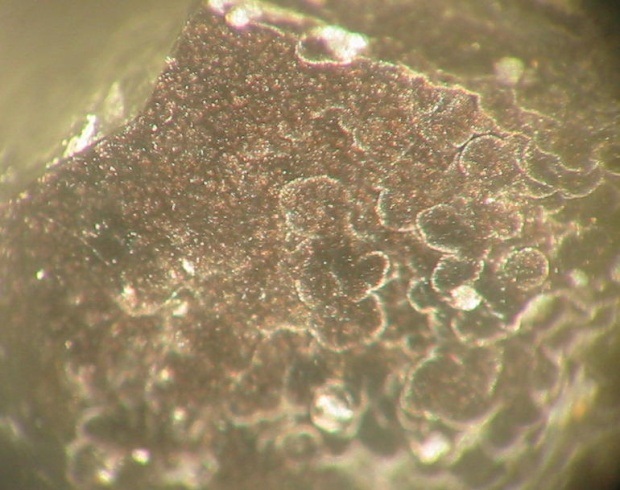 Nieriger Hollandit mit limonitisch zersetzten, braunen Chalkopyriten vom tagebau Thiebenthal bei Gehren in Thüringen. |