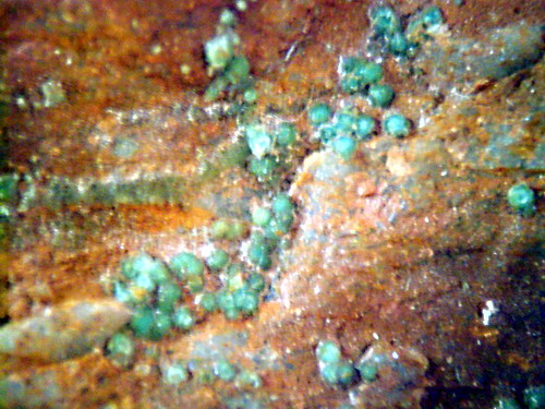 Rashleigit Ca-reiche Türkis-Varietät röntgenanalyseiert auf Brauneisen_BB 6mm_Halde Grube Mark_Essershausen_Wetzlar_Hessen_Eigenfund_0506_.jpg |