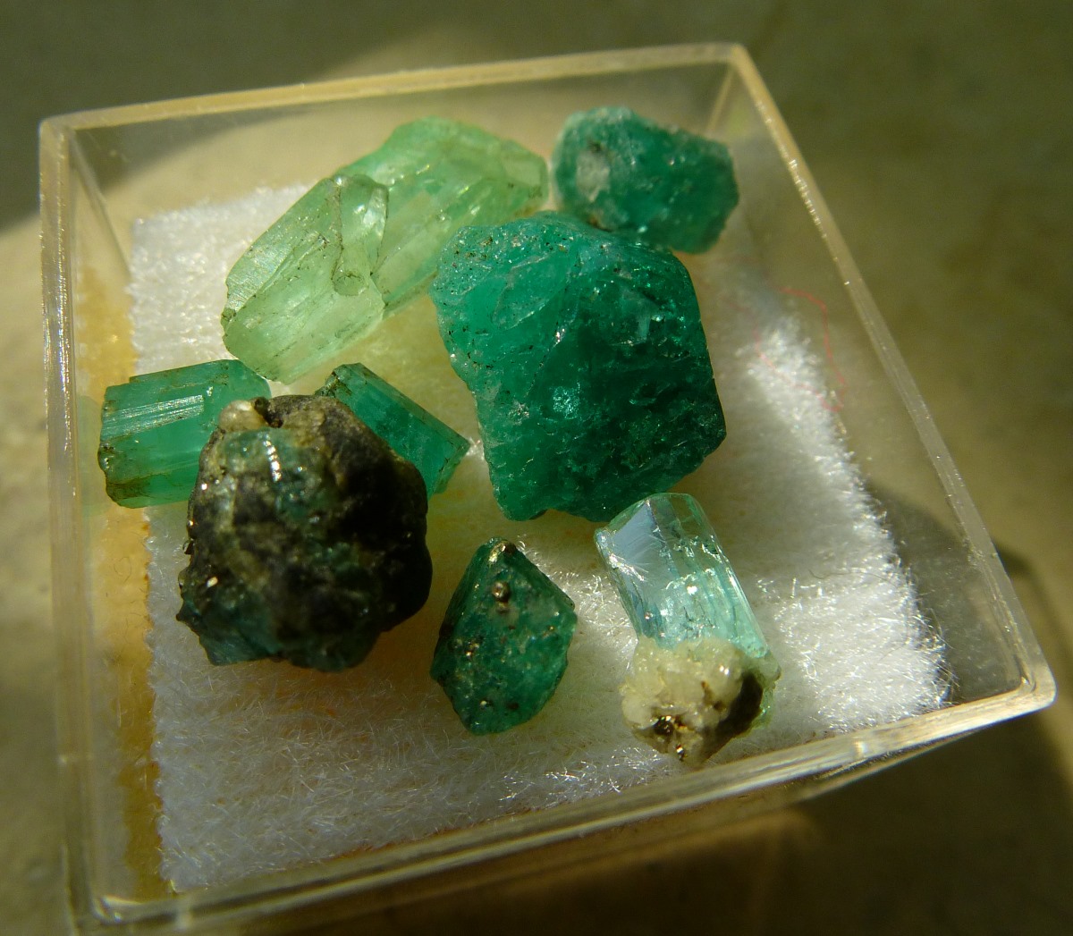Sollten synthetische Smaragde vorliegen, so wird man keine typischen Pyrit-Einschlüsse darin finden - nein, man wird dann logischerweise gar keine Einschlüsse finden. Je nach Einschluss könnte ich sogar sagen, ob die Kristalle eher aus Chivor oder Muzo in Kolumbien stammen oder doch "nur" aus dem Habachtal - vorausgesetzt es sind echte Smaragde aus dem Naturvorkommen!