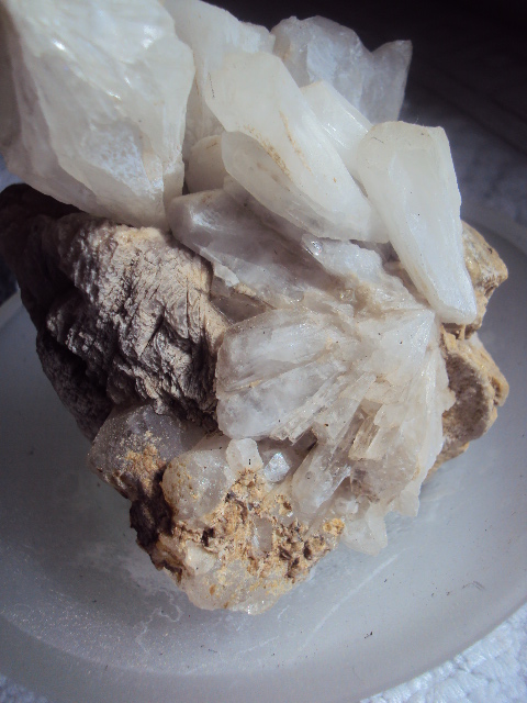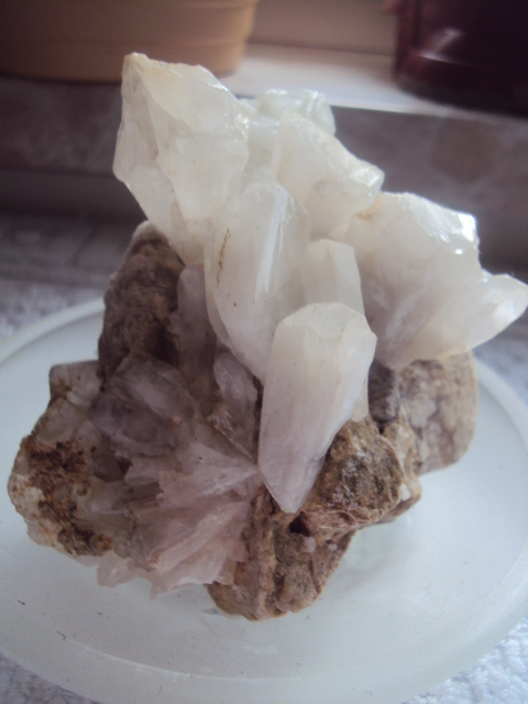 Beim Rabatte setzen kam mir dieser "Bergkristall?" unter die schaufel gesäubert wurde der von mir mit Geschirrspültabs.Präsentiert auf einer alten Gläserenen Seifenschale.Aber Bergkristall hat durch Gläserne Spitzen?