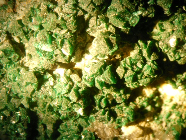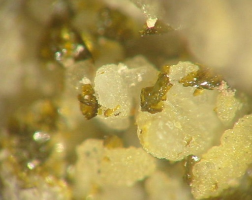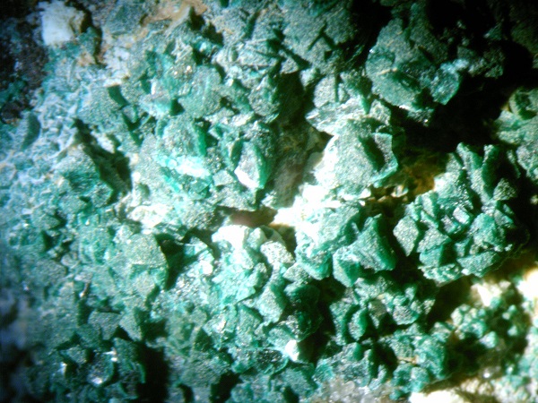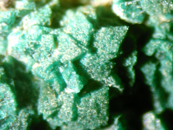 aus dem Material von der Halde der Grube Skt. Christoph bei Gräfenroda habe ich ein fragliches Stück unter dem Binokular abgelichtet. Das Mineral halte ich für Libethenit. Bin mir aber nicht ganz sicher, da ich schon die ungewöhnlichsten Malachit-Kristalle gesehen habe. Die Kristalle sind von dunkelgrüner Farbe, die in den nachfolgenden Bildern nicht 100%ig wiedergegeben wird. Von der chemischen Zusammensatzung würde Libethenit durchaus zum Raubschloss- Vorkommen passen.
