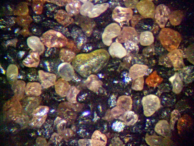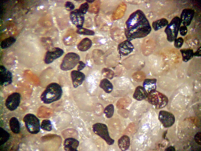 können im sogenannten Schwarzsand abgerollte Körner verschiedener