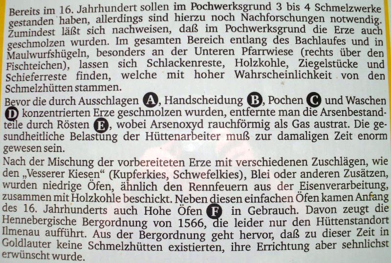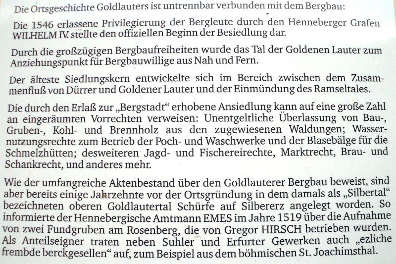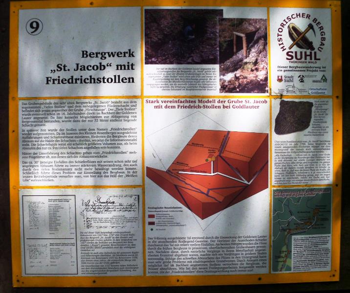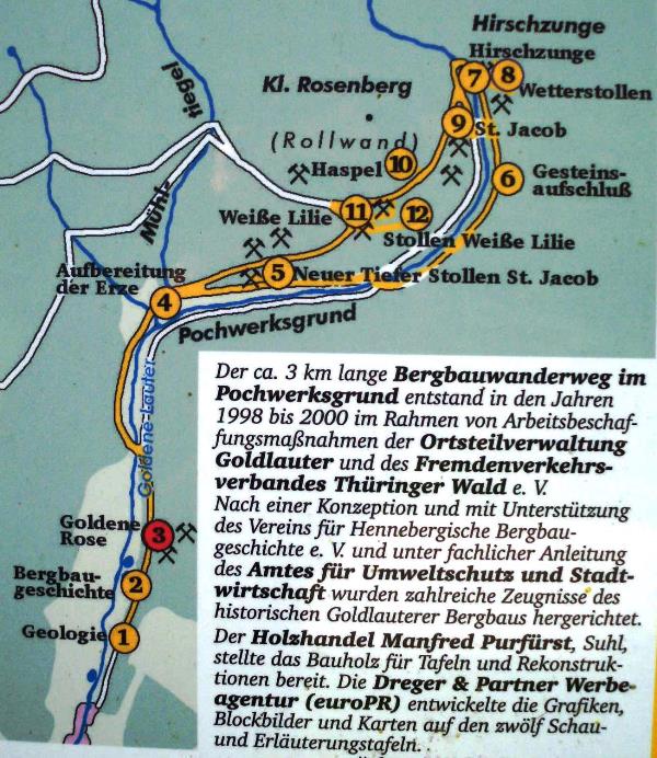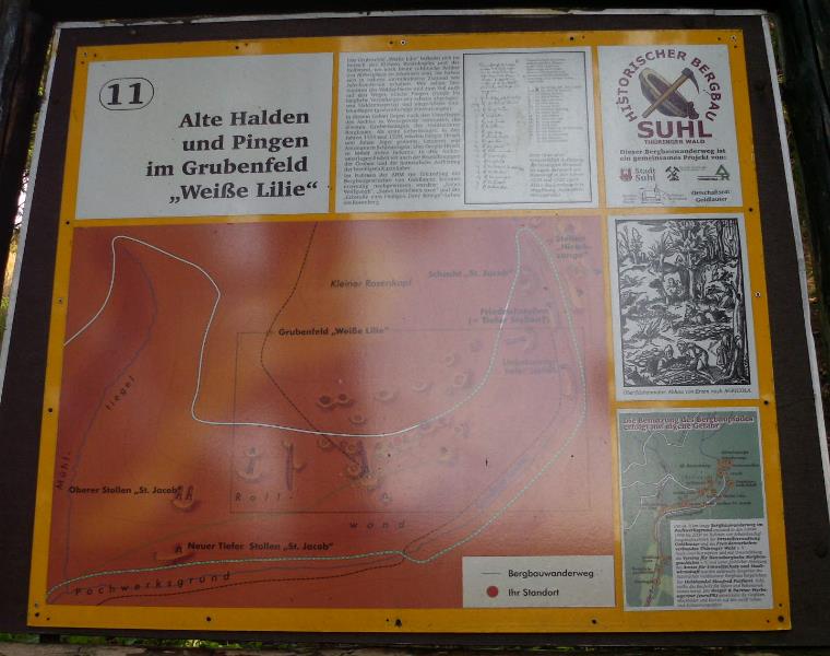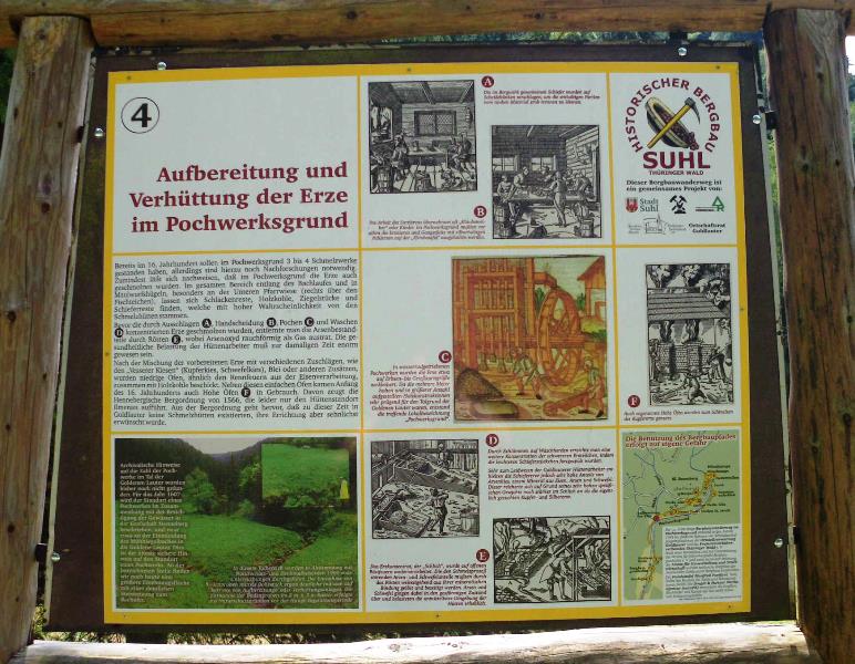 Aber mit der Errichtung eines Bergbaulehrpfades im Jahre 1999 durch die Stadt Suhl wurde auf zahlreichen Schautafeln der ehemalige Bergbau hier im Revier den Touristen näher gebracht.