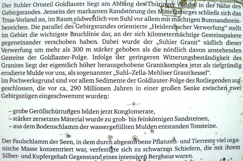 Schon sehr lange ist die Stadt Suhl bekannt für ihren Eisenerzbergbau und der daraufhin entstandenen Waffenproduktion, auf Grund der Güte der hier gefundenen Eisenerze. Aber es gab auch noch einen anderen Bergbau auf Kupfer und Silber. Beim fast schon vergessenen Dorf Goldlauter - heute Stadtteil von Suhl - fand in den sogenannten Goldlauterer Schichten ehemals ein sehr reger Bergbau auf diese Schichten statt. Was machte diese Schichten so interessant? Der Thüringer Mineraliensammler weiß natürlich gleich, was ich meine