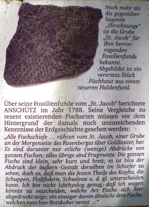Aus diesem Grund sind die Goldlauter Schichten auch für ihre hervorragenden Fossilienfunde bekannt. Ein Fossil machte eine Schicht berühmt. Der Stachelhei Acanthodes gracilis. Nach ihm wurden die Acanthodes-Schichten benannt. Und dieser Schicht galt der Bergbau. Im Laufe der Jahrmillionen bildeten sich aus den Faulschlammresten sogennannte Erznieren mit unterschiedlichem Erzgehalt. Und diese Erznieren galt es bergmännisch zu fördern.