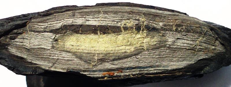 Durch die jahreszeitlichen Schwankungen setzten sich die organischen Sedimente fein ab und bildeten somit die Grundlage für die spätere Schieferung dieser Formation.