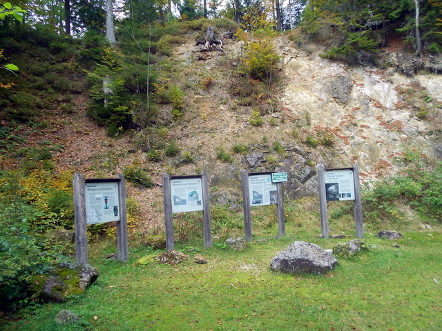 Mit Hilfe von Schaufafeln wird die Geschichte des Quarzbruches am