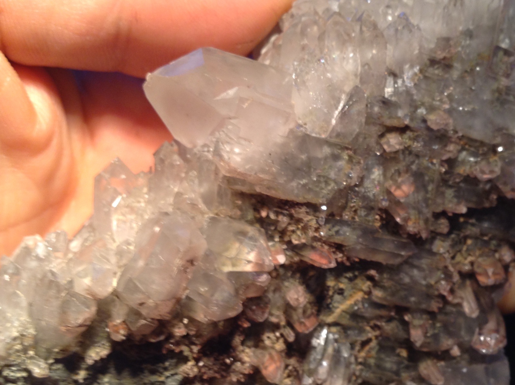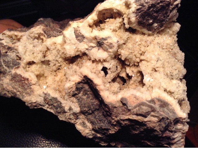Habe hier ein Stück aus Tvedestrand . Könnt ihr mir sage was das ist . Reagiert nicht auf Salzsäure. Rund um Fundstelle viele Quarzdrusen , aber