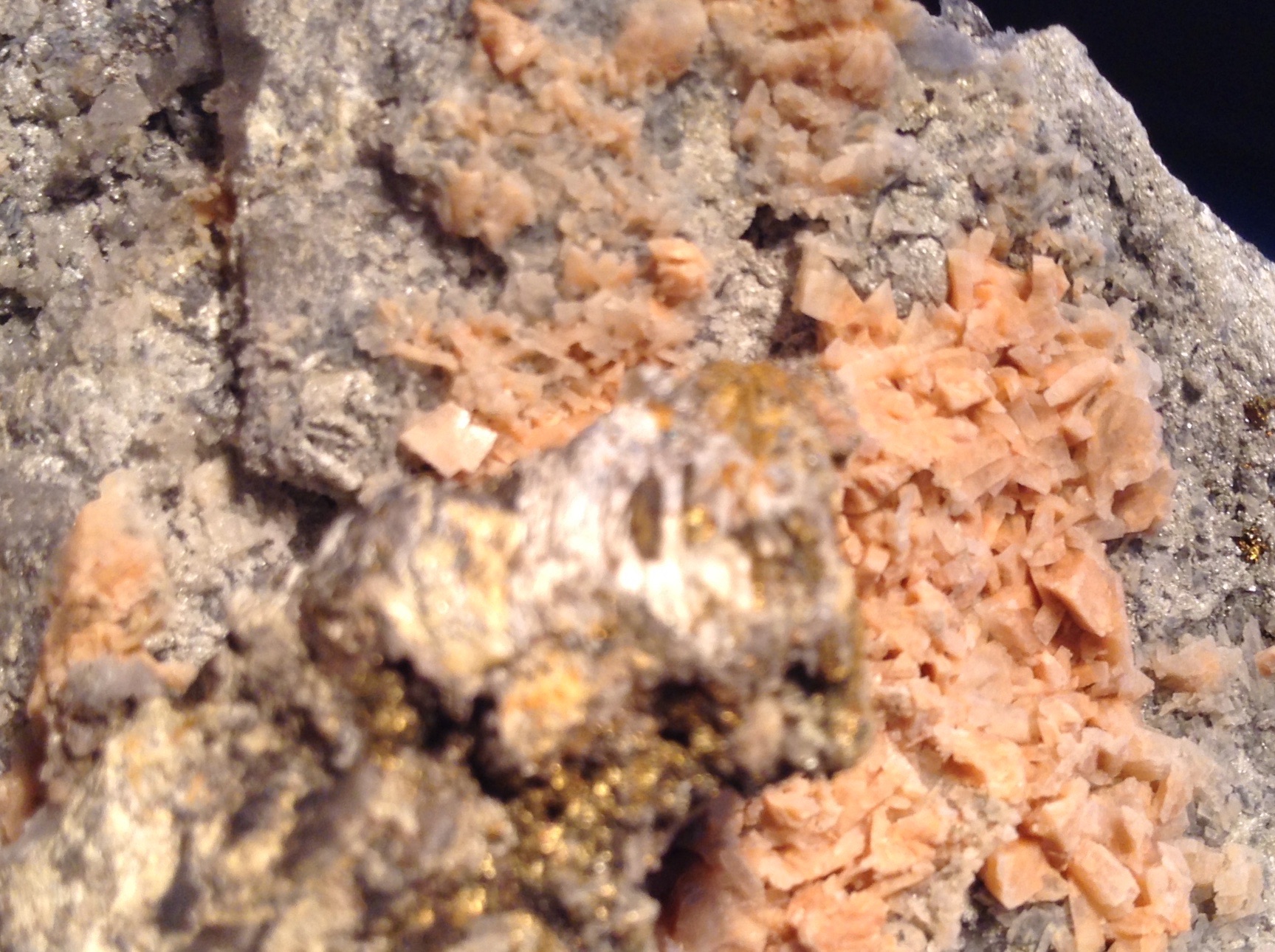Habe hier ein Stück aus der Skyttemyr Kobbermine / Froland / Aust Agder / Norwegen. Nach dem aussäuren fand ich diese rosa Kristalle . Normalerweise schöne Kupferkies Stufen von hier. Was kann das sein ?
