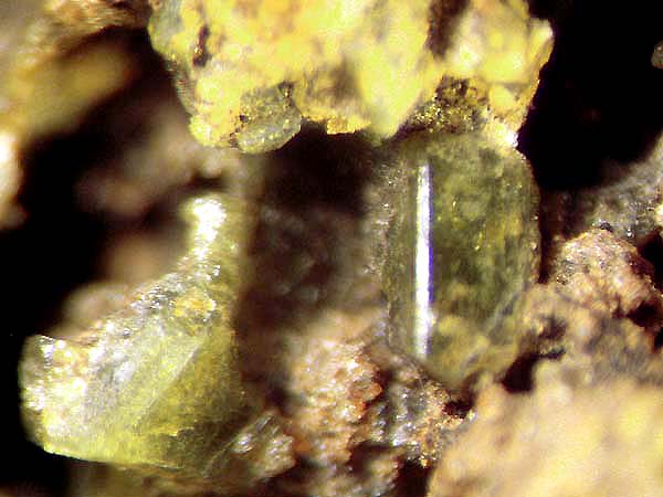 | Information: | Eigenfund Sanidin-Kristall (Feldspat-Gruppe) auf Pyroxen-Kristall - Mikroskop-Aufnahme - Bildbreite 4 mm |