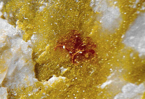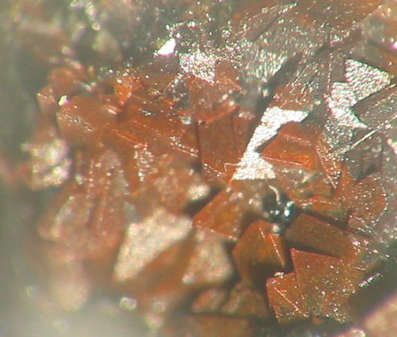 Eigenfund - Beudantit = braune kristalline Partien - Mikroskop-Aufnahme - Bildbreite 6 mm |