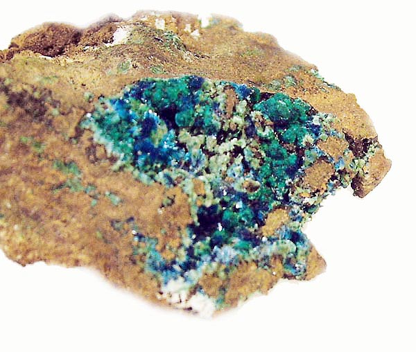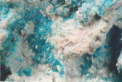 Foto zeigt blauen Serpierit mit weißem Zincowoodwardit aus meiner Sammlung ..