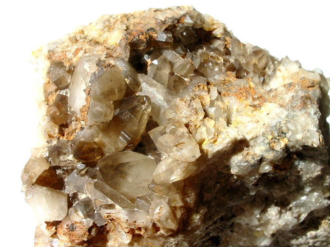 Der Schneckenstein im Vogtland ist zweifelsohne eine der deutschen "Weltfundstellen". Der Grund sind die dort vorkommenden herrlichen, tiefgelben Topase. Schon um den Namen ranken sich Geschichten und Sagen. Einstmals soll der aus der Landschaft ragende, aus topasführendem Turmalingreisen bestehende Felsen die Form einer Schnecke gehabt haben, deshalb der Name. Eine andere Herleitung kommt von "Schöneckenstein", nach dem Ort Schöneck. Sagenhaft sind auch die Angaben über Topase: bis 12 cm große Exemplare soll es gegeben haben, auch hellblau und grün gefärbte. Sicher ist: die meisten Exemplare sind farblos bis weingelb, durch Einschlüsse auch grau bis "matschig" lila gefärbt und nicht größer als 5 cm. Eine Seltenheit ist grauer, stengeliger "Pyknit". Häufige Begleiter sind kleine Quarz xx und "Steinmark" (Kaolinit) sowie kleine grünliche Turmalin xx. Die Quarze nehmen selten Dimensionen über 2 cm an, bisweilen sind sie rauchig gefärbt. Die Liste der vorkommenden Minerale ist durchaus lang, vieles aber ist nur in Einzelexemplaren vorgekommen. Einige Arten sollen erwähnt werden: Orthoklas-Pseudomorphosen (ähnlich wie jene vom Saubachriss, nur kleiner), "Alumochalkosiderit" als grüne Kügelchen, Wolframit als dünne Tafeln (selten über 1 cm), winzige Rutil xx (häufig), ebenfalls winzige rote Crandallit xx, Wavellitsonnen als gesuchte Rarität.