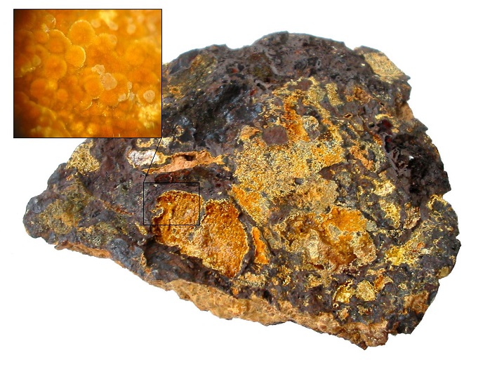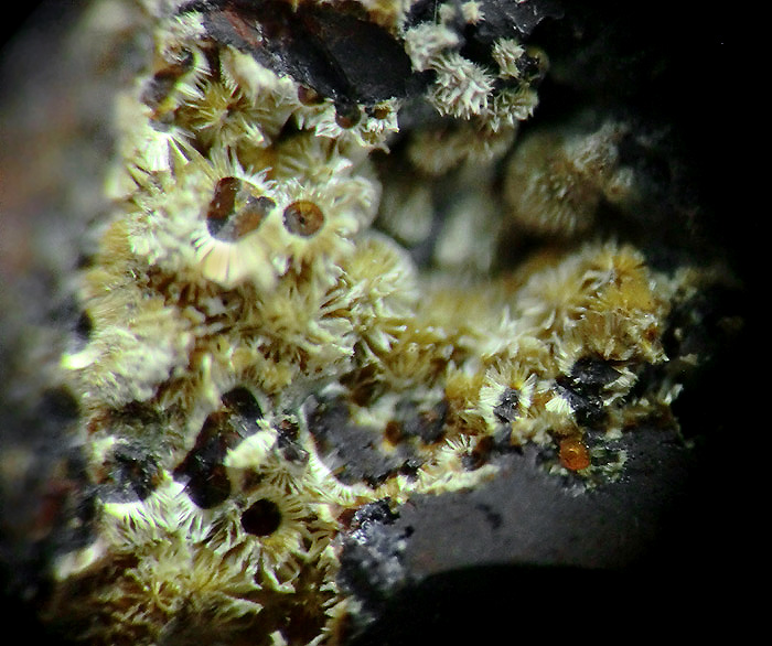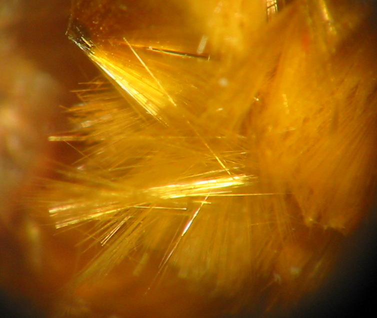 Auch wenn man es bei dem Fundort vermuten würde: diese gelben Nadeln von Menzenschwand/Schwarzwald sind kein Uranmineral, sondern Kakoxen. |
