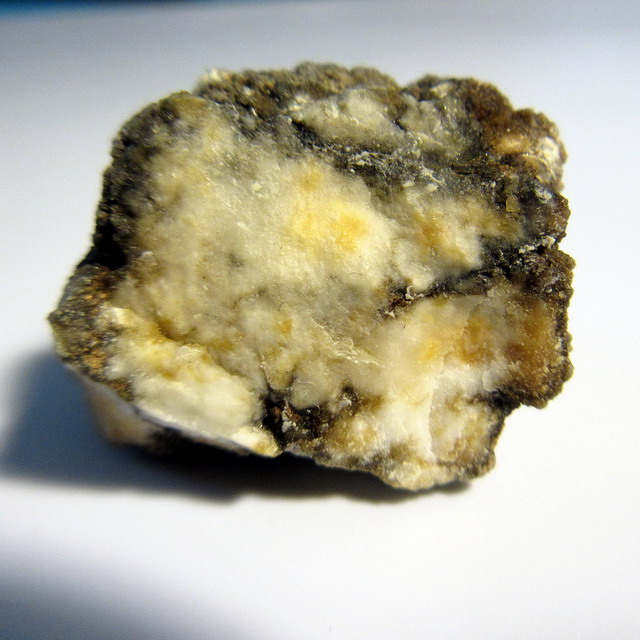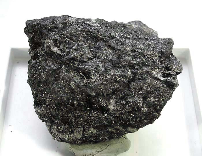 | Information: | Kleinstufe - gekauft noch als "Barkevikit" (Ferropargasit). 1978 von der IMA diskreditiert. Nun gilt es als Vertreter der Amphibol-Gruppe mit variabler Zusammensetzung in Richtung Ferroedenit-Hastingsit-Magnesiohastingsit. |