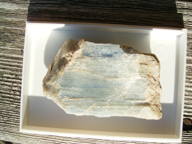 zwischen Marktschorgast und Falls gibt es am Waldrand eine kleine Felsgruppe aus Eklogit, wo in 1995 in Quarzknauern schöne Disthene bis 5 cm gefunden wurden. Nach dem "Abbau" waren im Anstehenden noch einige Disthene sichtbar, auch im Hangschutt gab es noch Belege zu finden. Nach vielen Jahren war ich heute mal an dieser Fundstelle wieder dort. Das Anstehende ist mit einer dicken Moosschicht bewachsen, im Abraum sind keine Funde mehr möglich. Da müsste man schwer arbeiten, um noch auf höffige Brocken zu stoßen.