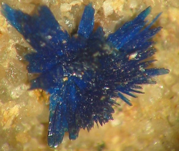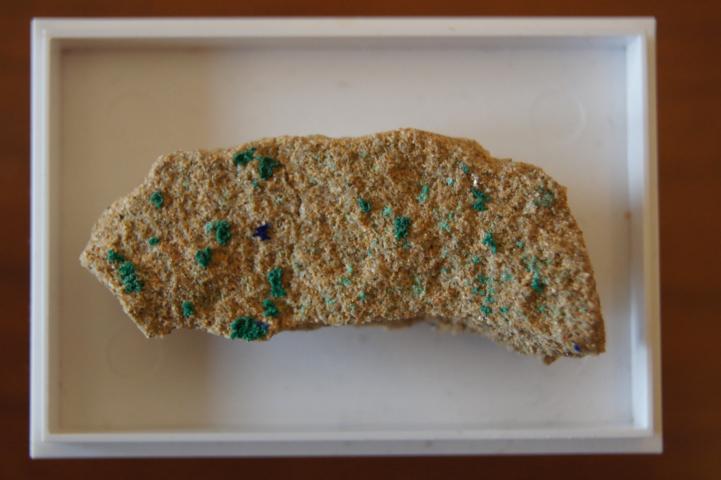 Hier ein Azurit als Imprägnation im Sandstein von der Grube Limbergstollen bei Wallerfangen